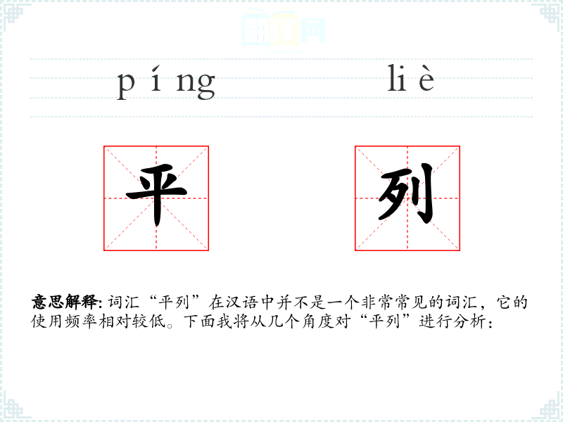 词汇“平列”在汉语中并不是一个非常常见的词汇,它的使用频率相对较低。下面我将从几个角度对“平列”进行分析: