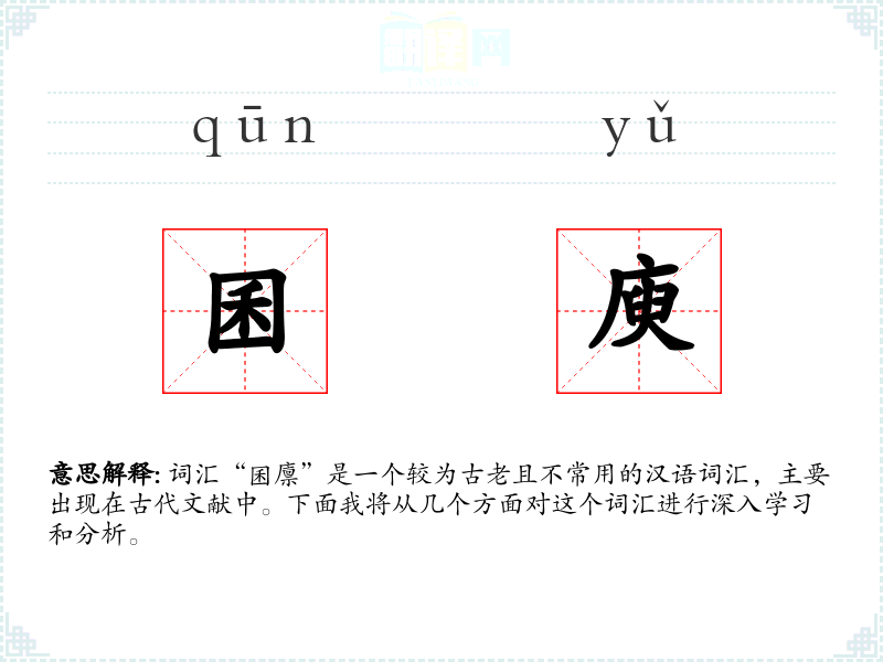 词汇“囷廪”是一个较为古老且不常用的汉语词汇,主要出现在古代文献中。下面我将从几个方面对这个词汇进行深入学*和分析。