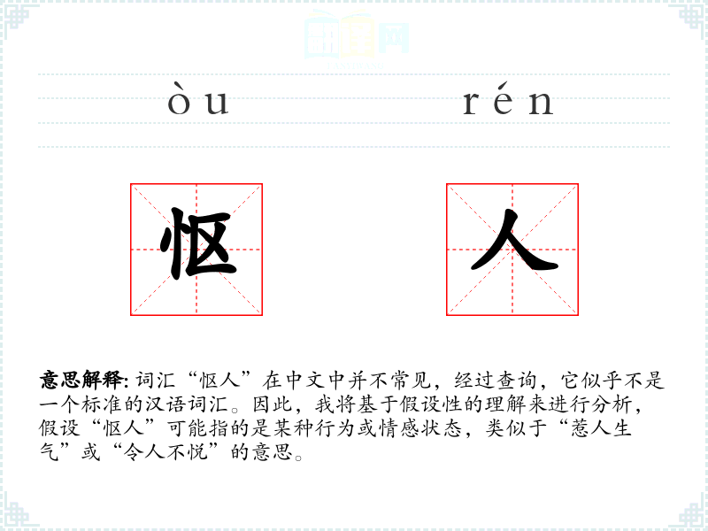 词汇“怄人”在中文中并不常见,经过查询,它似乎不是一个标准的汉语词汇。因此,我将基于假设性的理解来进行分析,假设“怄人”可能指的是某种行为或情感状态,类似于“惹人生气”或“令人不悦”的意思。