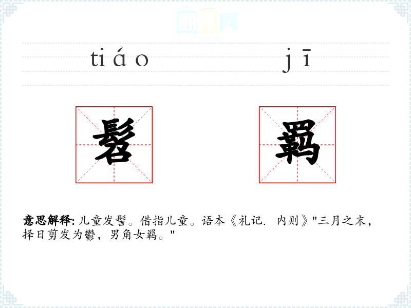 儿童发髻。借指儿童。语本《礼记.内则》"三月之末,择日剪发为鬱,男角女羁。"