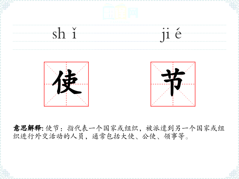 - 专业领域:在国际关系、外交学等领域,使节是一个核心术语,用于描述外交活动的执行者。