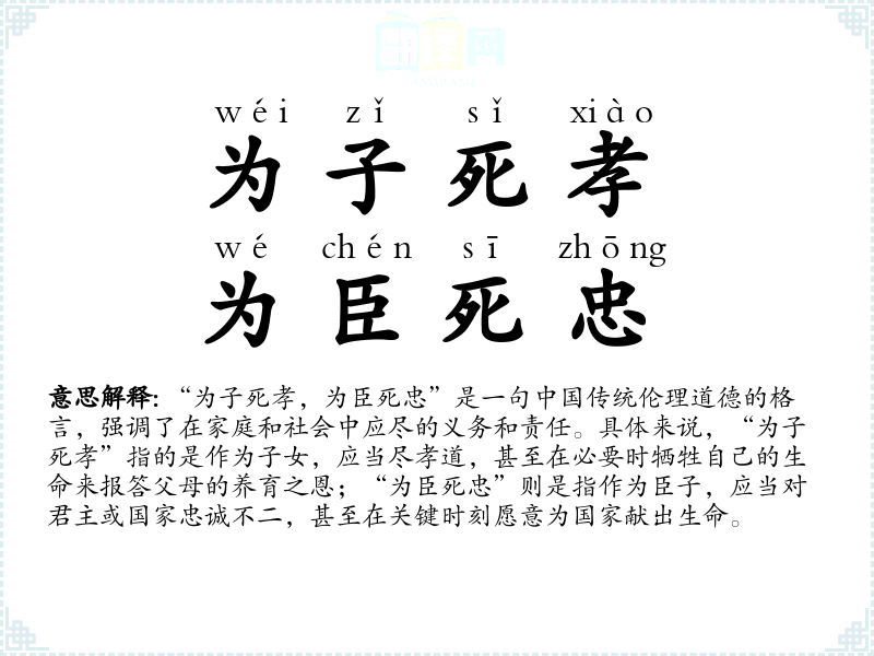 - wéi zǐ sǐ xiào,wé chén sī zhōng为子死孝,为臣死忠