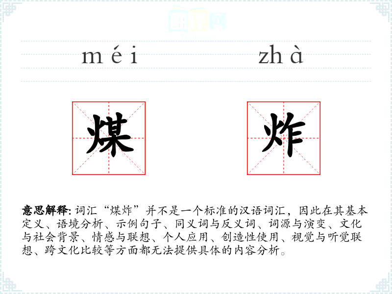 词汇“煤炸”并不是一个标准的汉语词汇,因此在其基本定义、语境分析、示例句子、同义词与反义词、词源与演变、文化与社会背景、情感与联想、个人应用、创造性使用、视觉与听觉联想、跨文化比较等方面都无法提供具体的内容分析。