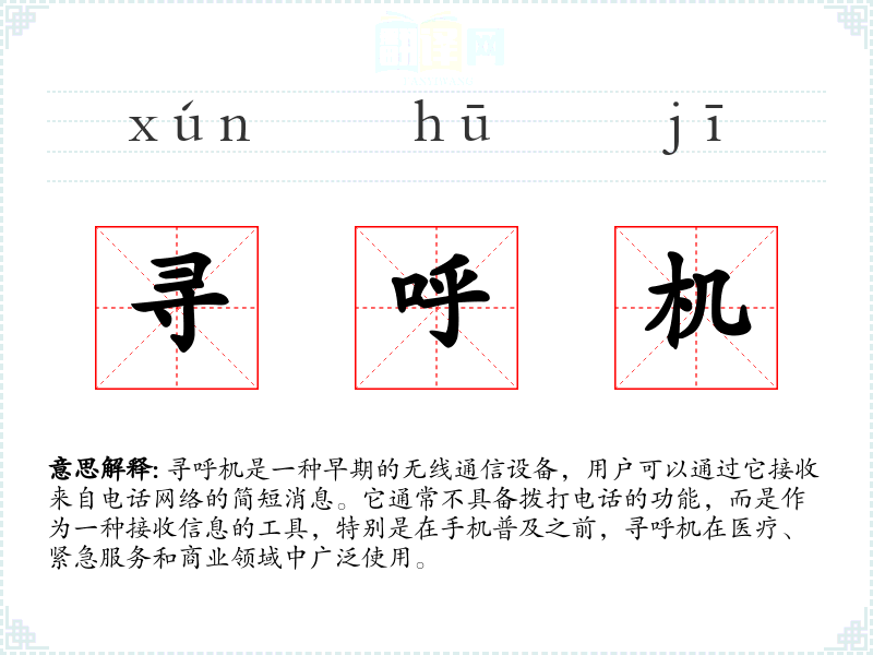 "寻呼机"的意思解释、寻呼机是什么意思由翻译网汉语词典查词提供。