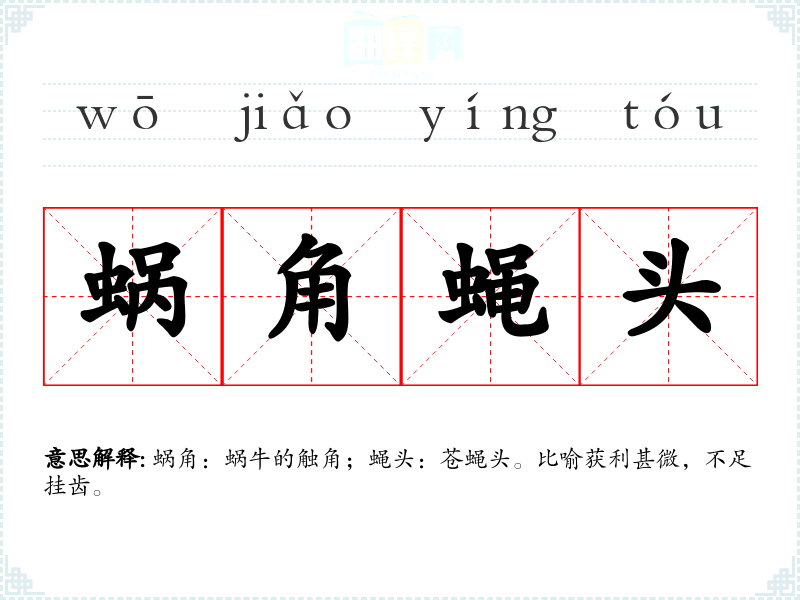 蜗角:蜗牛的触角;蝇头:苍蝇头。比喻获利甚微,