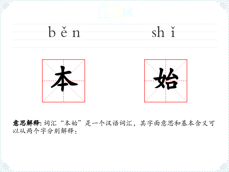 词汇“本始”是一个汉语词汇,其字面意思和基本含义可以从两个字分别解释: