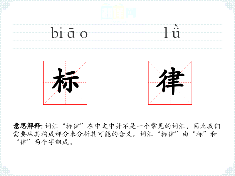 词汇“标律”在中文中并不是一个常见的词汇,因此我们需要从其构成部分来分析其可能的含义。词汇“标律”由“标”和“律”两个字组成。