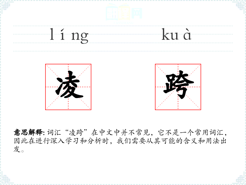词汇“凌跨”在中文中并不常见,它不是一个常用词汇,因此在进行深入学习和分析时,我们需要从其可能的含义和用法出发。