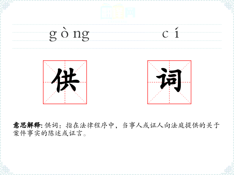 "供词"的意思解释、供词是什么意思由翻译网汉语词典查词提供。