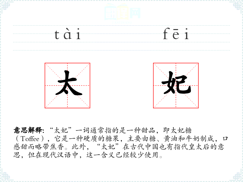 “太妃”一词的现代用法主要来源于英文“Toffee”,经过音译和适应汉语表达*惯后形成。在古代汉语中,“太妃”原本指皇太后,这一含义随着时间的推移逐渐淡出日常用语。
