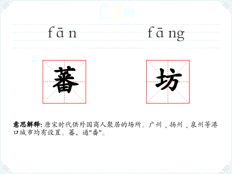唐宋时代供外国商人聚居的场所。广州﹑扬州﹑泉州等港口城市均有设置。蕃,通"番"。