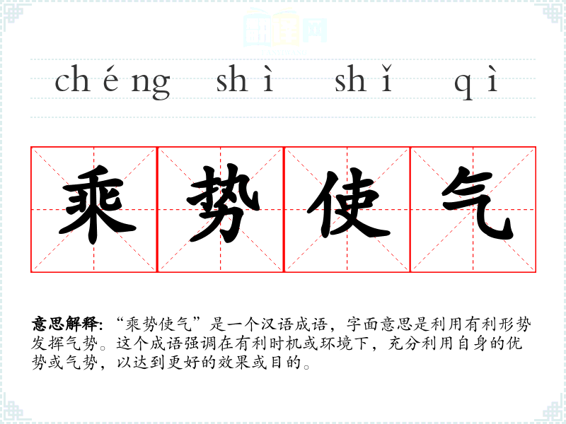 “乘势使气”是一个汉语成语,字面意思是利用有利形势发挥气势。这个成语强调在有利时机或环境下,充分利用自身的优势或气势,以达到更好的效果或目的。