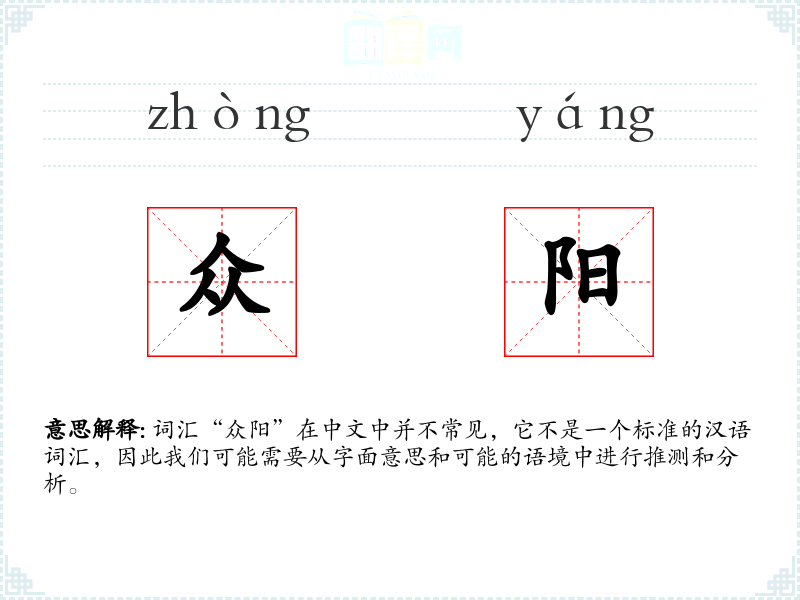 词汇“众阳”在中文中并不常见,它不是一个标准的汉语词汇,因此我们可能需要从字面意思和可能的语境中进行推测和分析。