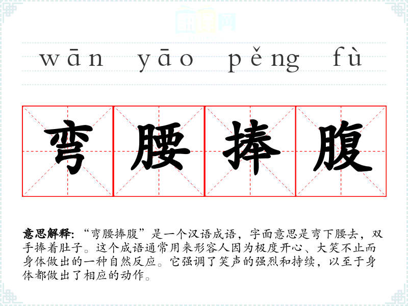 在**文化中,笑声常被视为一种积极的社会互动方式,能够增进人际关系和缓解紧张气氛。因此,“弯腰捧腹”这个成语在描述笑声时,也体现了这种文化价值观。