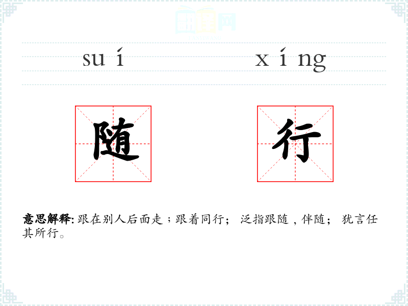 跟在别人后面走﹔跟着同行; 泛指跟随﹐伴随; 犹言任其所行。