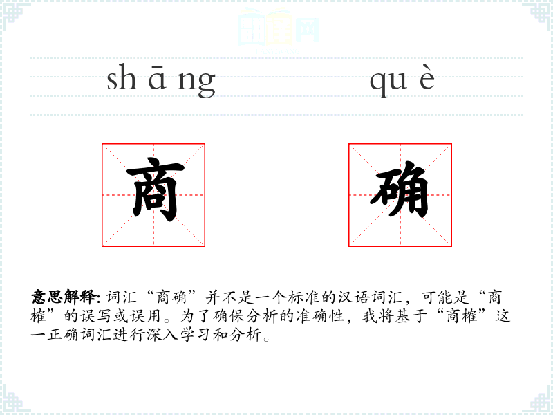 词汇“商确”并不是一个标准的汉语词汇,可能是“商榷”的误写或误用。为了确保分析的准确性,我将基于“商榷”这一正确词汇进行深入学*和分析。