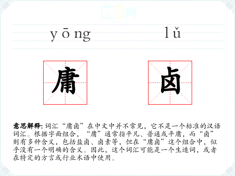 词源与演变: 由于“庸卤”不是一个标准词汇,它的词源和历史演变无从考究。