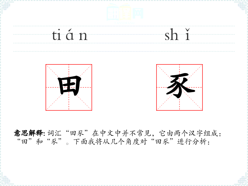词汇“田豕”在中文中并不常见,它由两个汉字组成:“田”和“豕”。下面我将从几个角度对“田豕”进行分析: