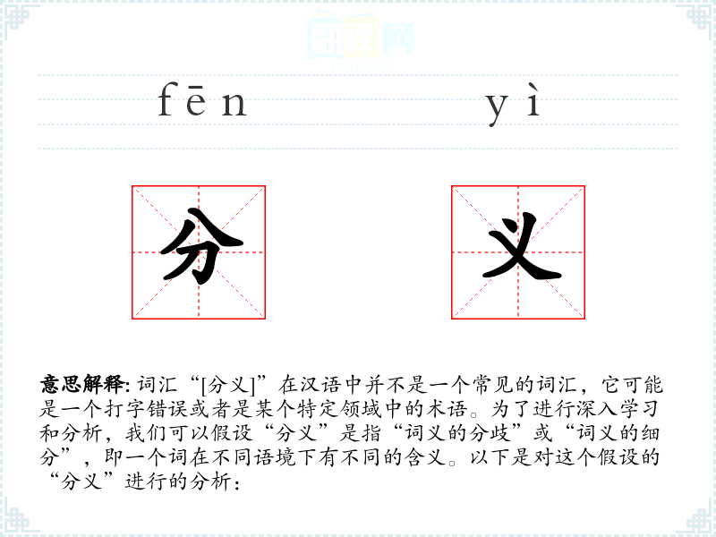 “分义”可以理解为词汇的多个含义或解释,即一个词在不同的语境中可能有不同的意义。
