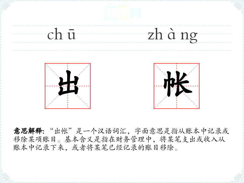 在不同的语境下,“出帐”可以有不同的含义和用法: