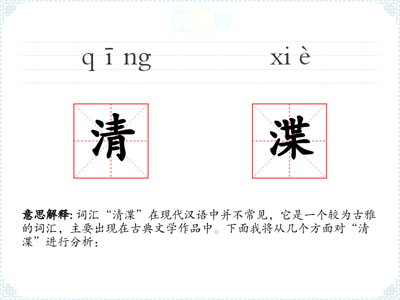 通过对“清渫”的分析,我更加深入地理解了这个词汇的含义和用法。在语言学*和表达中,了解和运用这样的古雅词汇,可以丰富语言的表达层次,提升文学素养。