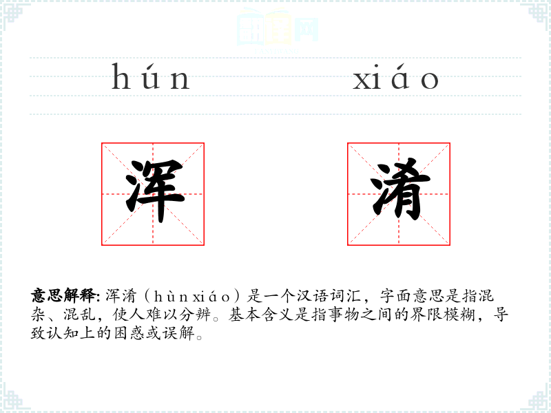 浑淆(hùn xiáo)是一个汉语词汇,字面意思是指混杂、混乱,使人难以分辨。基本含义是指事物之间的界限模糊,导致认知上的困惑或误解。