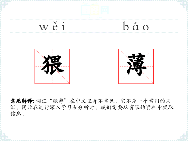 词汇“猥”在中文里并不常见,它不是一个常用的词汇,因此在进行深入学和分析时,我们需要从有限的资料中提取信息。