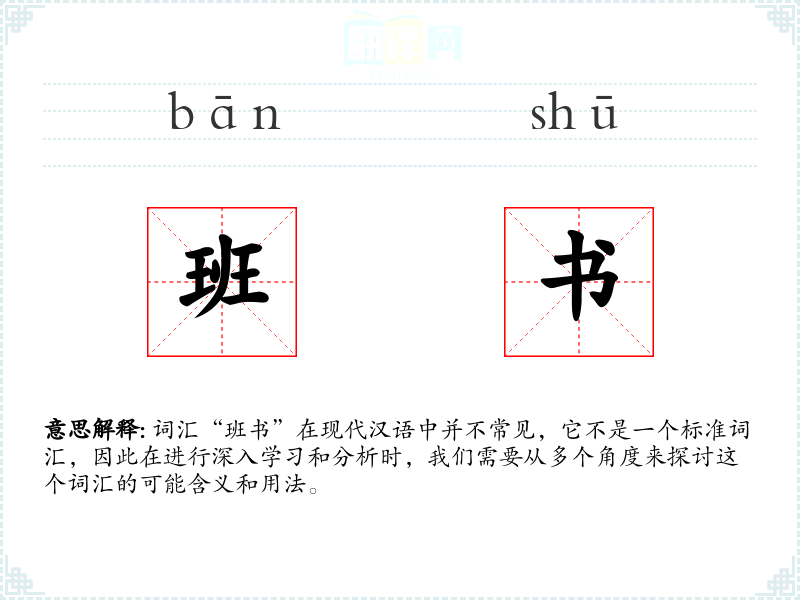 词汇“班书”在现代汉语中并不常见,它不是一个标准词汇,因此在进行深入学习和分析时,我们需要从多个角度来探讨这个词汇的可能含义和用法。