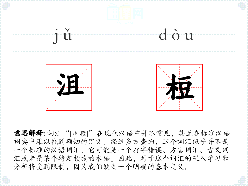 如果“[沮梪]”是一个特定的方言词汇或专业术语,那么了解其具体含义和使用背景将需要进一步的本地化研究或专业知识。在没有更多信息的情况下,我们只能暂时将这个词汇标记为不明确,并在未来的学习和研究中保持关注。