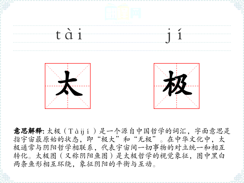"太极"的意思解释、太极是什么意思由翻译网汉语词典查词提供。