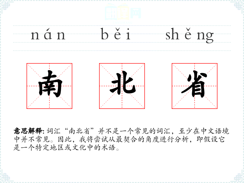 词汇“南北省”并不是一个常见的词汇,至少在中文语境中并不常见。因此,我将尝试从最契合的角度进行分析,即假设它是一个特定地区或文化中的术语。