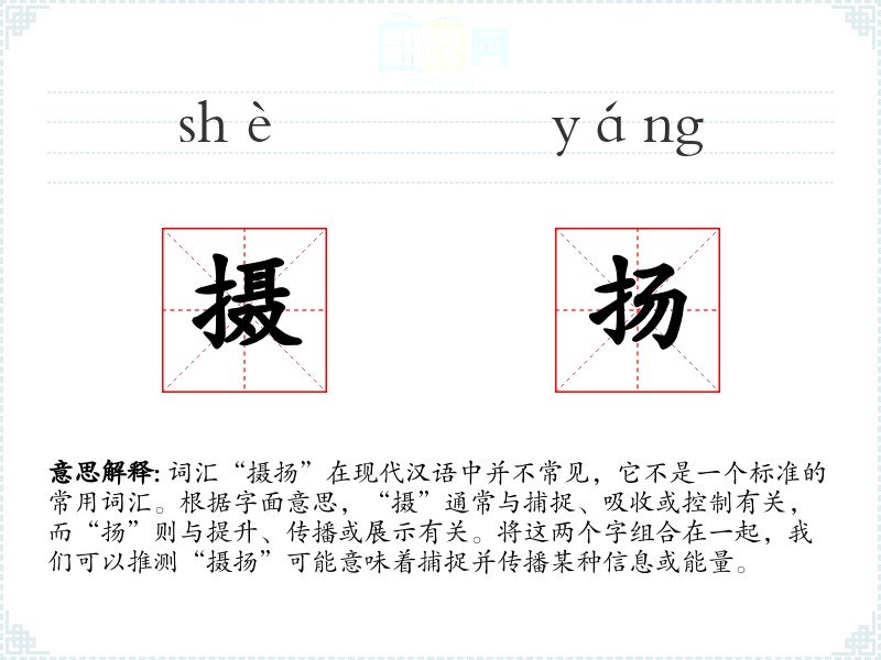由于“摄扬”不是一个常用词汇,它在不同语言或文化中的对应词汇及其使用情况不详。
