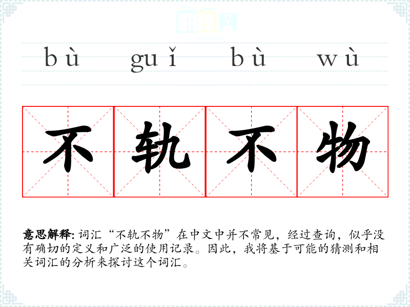 词汇“不轨不物”在中文中并不常见,经过查询,似乎没有确切的定义和广泛的使用记录。因此,我将基于可能的猜测和相关词汇的分析来探讨这个词汇。
