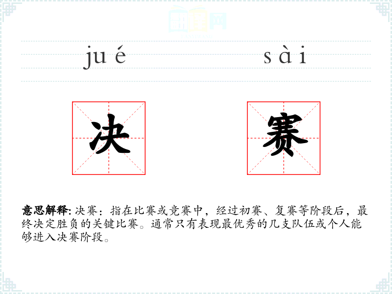 - 反义词:初赛、预赛、选拔赛