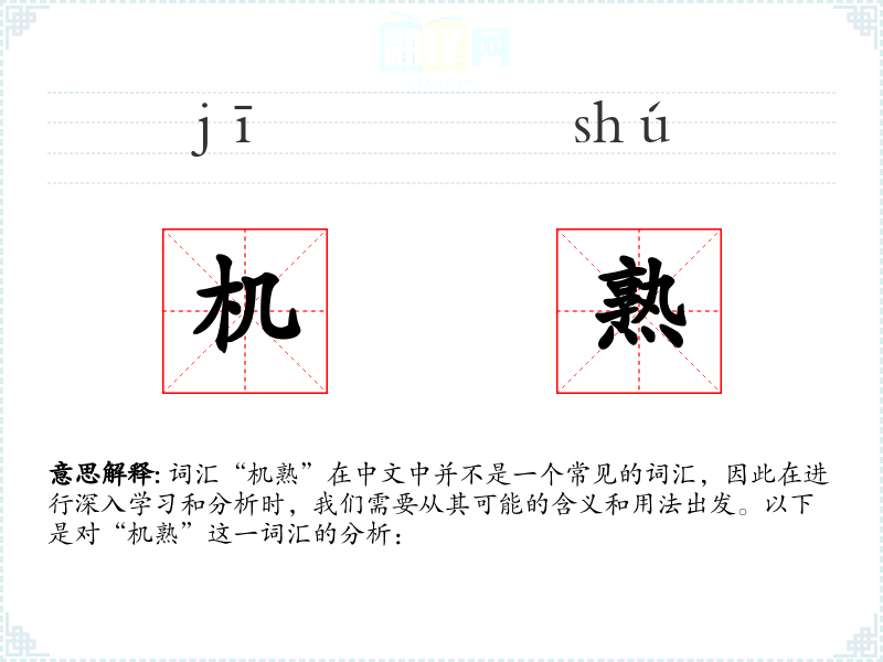 词汇“机熟”在中文中并不是一个常见的词汇,因此在进行深入学习和分析时,我们需要从其可能的含义和用法出发。以下是对“机熟”这一词汇的分析: