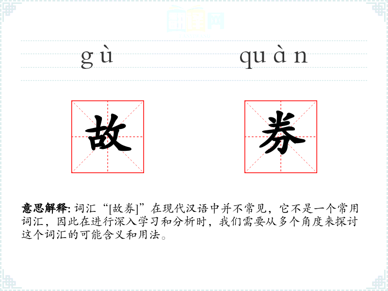 词汇“[故券]”在现代汉语中并不常见,它不是一个常用词汇,因此在进行深入学习和分析时,我们需要从多个角度来探讨这个词汇的可能含义和用法。