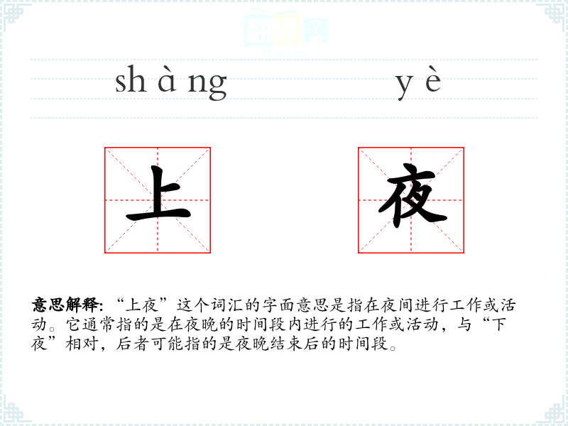 "上夜"的意思解释、上夜是什么意思由翻译网汉语词典查词提供。