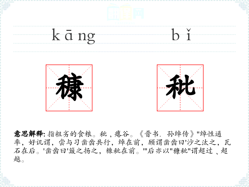 。'"后亦以"穅秕"谓超过﹑超越。