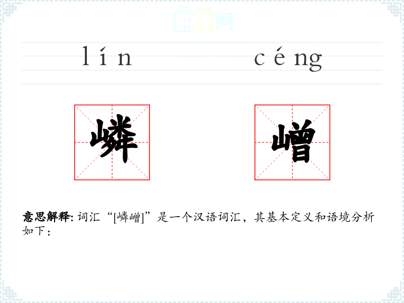 词汇“[嶙嶒]”是一个汉语词汇,其基本定义和语境分析如下: