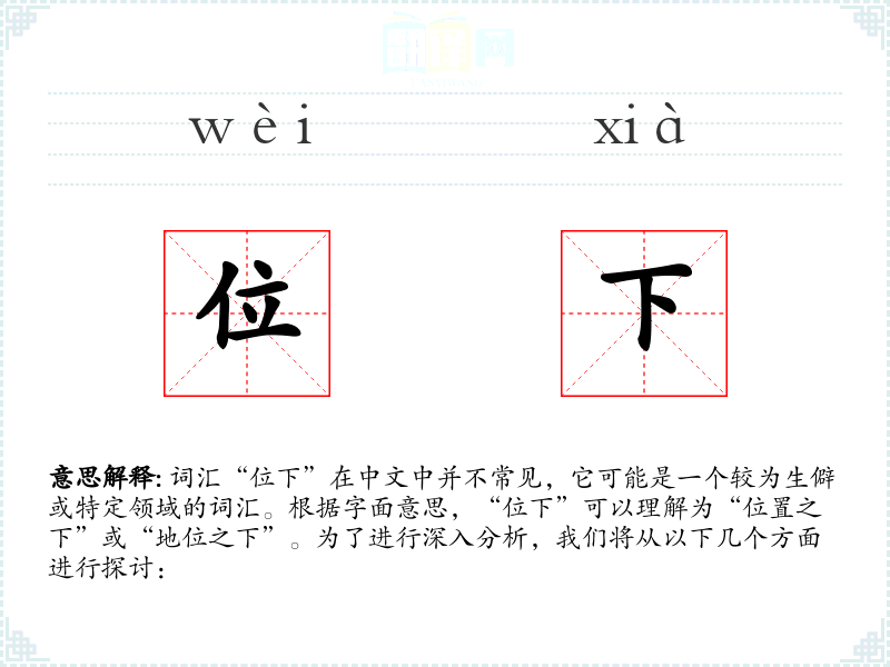词汇“位下”在中文中并不常见,它可能是一个较为生僻或特定领域的词汇。根据字面意思,“位下”可以理解为“位置之下”或“地位之下”。为了进行深入分析,我们将从以下几个方面进行探讨: