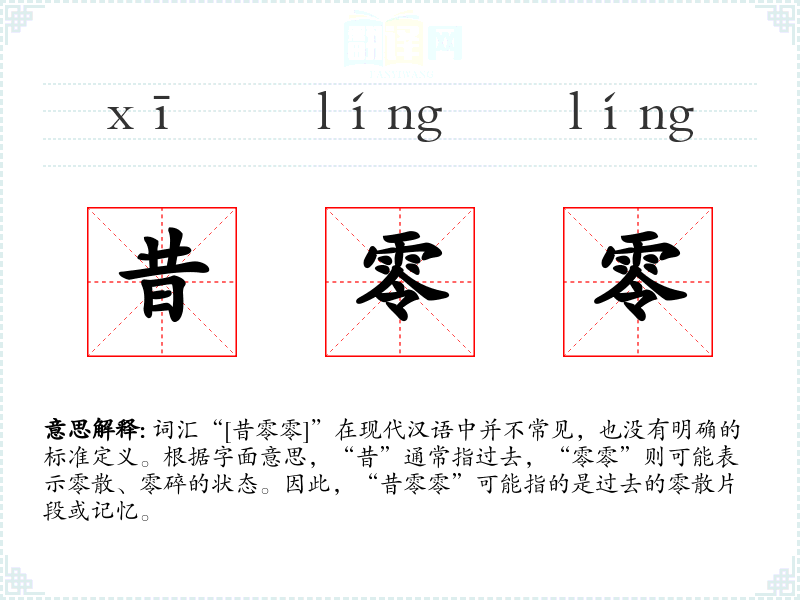 "昔零零"的意思解释、昔零零是什么意思由翻译网汉语词典查词提供。