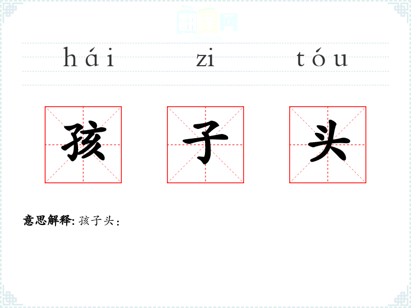 - 词源:“孩子头”一词源于汉语,由“孩子”和“头”两个词组成,直译为孩子的头部,后引申为孩子在群体中的领导地位。