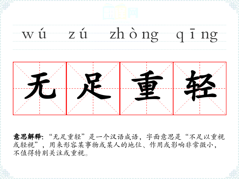 在英语中,类似的表达可能是“insignificant”或“of little importance”,但这些词汇在语境和情感色彩上可能与“无足重轻”有所不同。