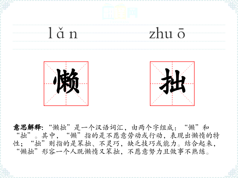 “懒”字最早见于《说文解字》,原意为懒惰。“拙”字则有笨拙之意,源自古代对技艺不精的描述。随着语言的发展,这两个字组合成“懒拙”,用来形容人的双重负面特质。