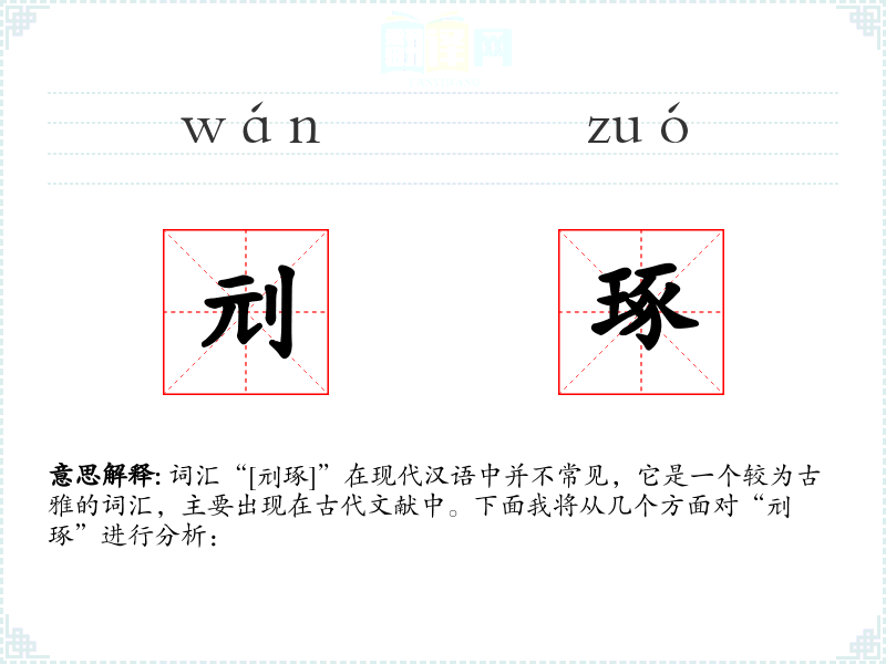词汇“[刓琢]”在现代汉语中并不常见,它是一个较为古雅的词汇,主要出现在古代文献中。下面我将从几个方面对“刓琢”进行分析: