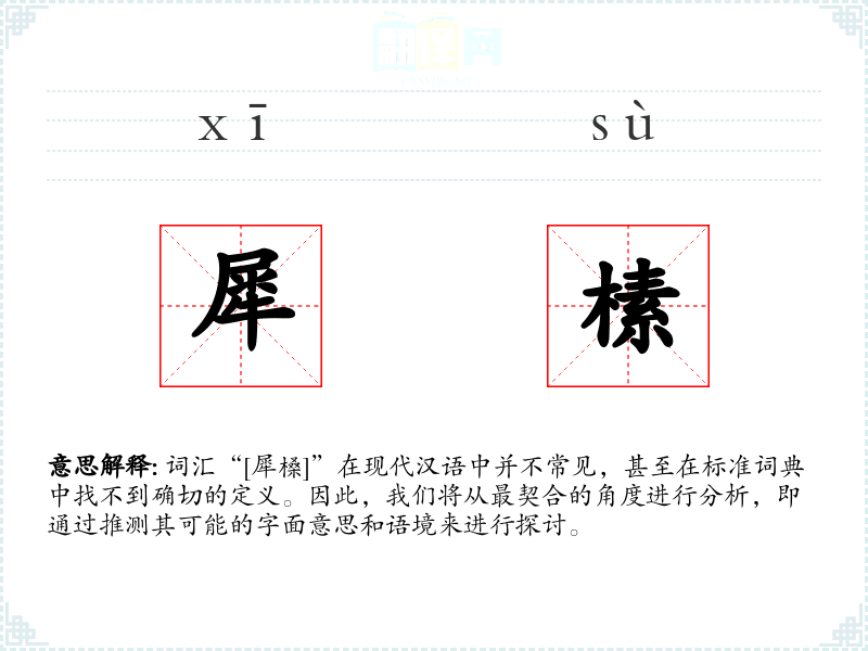 词汇“[犀槡]”在现代汉语中并不常见,甚至在标准词典中找不到确切的定义。因此,我们将从最契合的角度进行分析,即通过推测其可能的字面意思和语境来进行探讨。