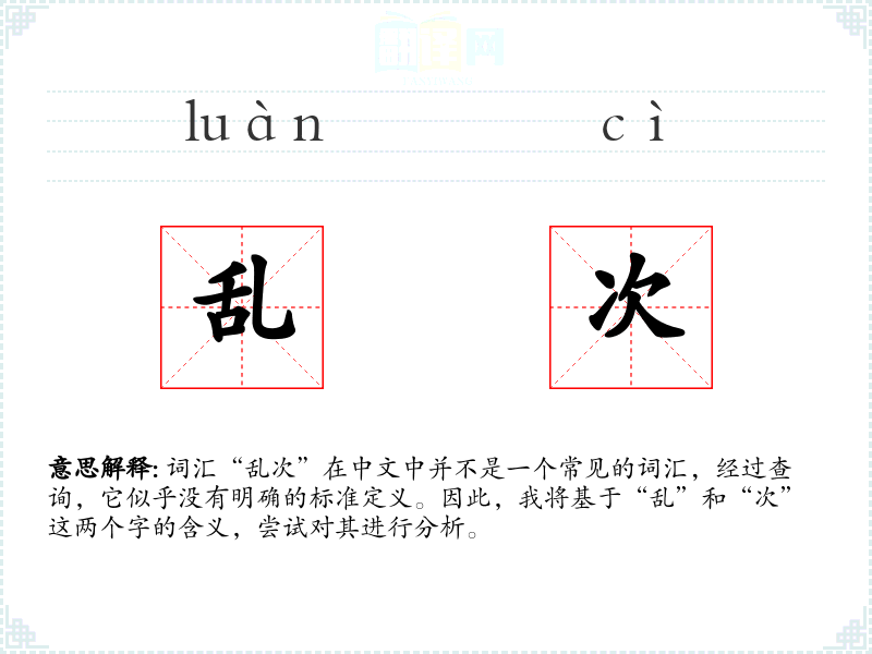 结合这两个字,“乱次”可能指的是无秩序的顺序或混乱的等级。