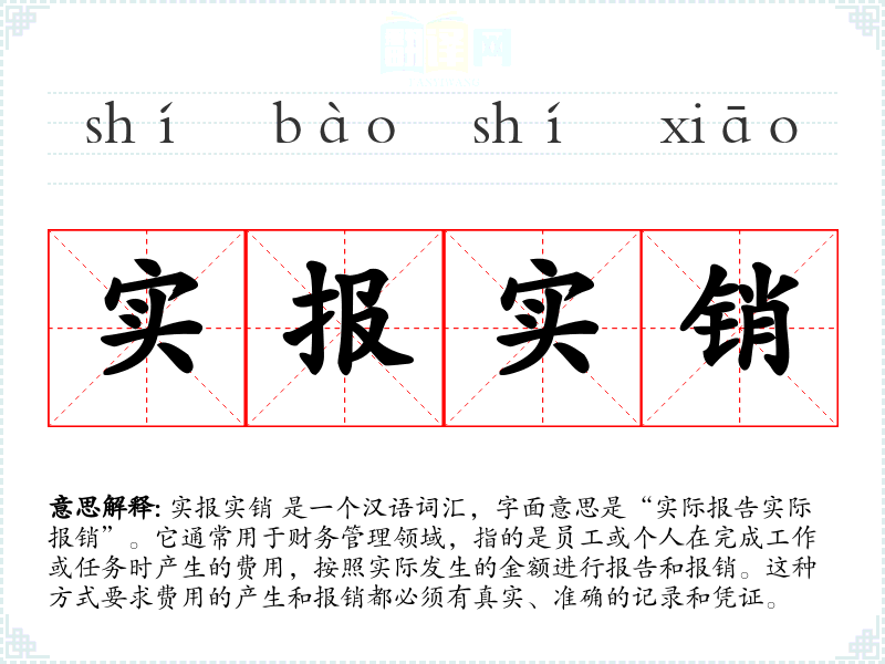 实报实销 是一个汉语词汇,字面意思是“实际报告实际报销”。它通常用于财务管理领域,指的是员工或个人在完成工作或任务时产生的费用,按照实际发生的金额进行报告和报销。这种方式要求费用的产生和报销都必须有真实、准确的记录和凭证。