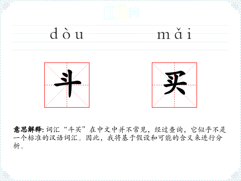 词汇“斗买”在中文中并不常见,经过查询,它似乎不是一个标准的汉语词汇。因此,我将基于假设和可能的含义来进行分析。