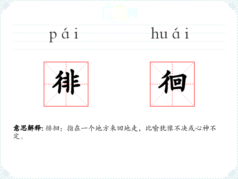 徘徊:指在一个地方来回地走,比喻犹豫不决或心神不定。